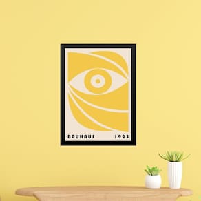 Quadro bauhaus amarelo - eye 45x34cm Cor: moldura preta Informações do produto tire todas as suas dúvidas no descritivo abaixo: decoração para quarto, sala, cozinha, escritório, área gourmet e muito mais. Chega de paredes vazias. Medidas - cada peça tem 45x34cm a3 . Material do papel - papel fotográfico brilhante de altíssima resolução acabamento - todos os quadros são acompanhados de uma película de acetato para proteção da imagem. - os quadros são embalados de forma segura com plástico bolha com camada dupla de acordo com o tamanho dos quadros. - de 3 meses. Meu quadro chegou. Como posso fixá-lo Você precisa apenas de um martelo e um prego, pois os quadros já vão acompanhados de penduradores. Esta é a forma mais indicada. Caso prefira, você pode utilizar uma fita dupla face neste caso, sugerimos de alta qualidade para evitar que descole e seu quadro caia . Como posso limpar meu quadro A limpeza é feita como um móvel comum da sua casa. Apenas um pano seco ou espanador são suficientes para tal