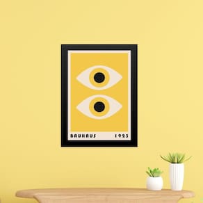 Quadro bauhaus amarelo - olhos 33x24cm - com vidro Cor: moldura branca Informações do produto tire todas as suas dúvidas no descritivo abaixo: decoração para quarto, sala, cozinha, escritório, área gourmet e muito mais. Chega de paredes vazias medidas - cada peça tem 33x24cm a4 . Material do papel - papel fotográfico brilhante de altíssima resolução acabamento - todos os quadros são acompanhados de vidro para proteção da imagem. - moldura em madeira maciça na cor preta ou branca conforme produto escolhido e pendurador . - os quadros são embalados de forma segura com plástico bolha com camada dupla de acordo com o tamanho dos quadros. - de 3 meses. Meu quadro chegou. Como posso fixá-lo Você precisa apenas de um martelo e um prego, pois os quadros já vão acompanhados de penduradores. Esta é a forma mais indicada. Como posso limpar meu quadro A limpeza é feita como um móvel comum da sua casa. Apenas um pano seco ou espanador são suficientes para tal