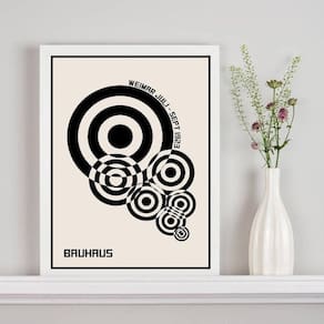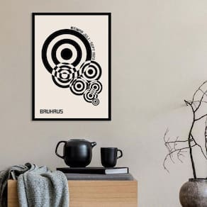 Quadro bauhaus círculos bege e preto 24x18cm - com vidro Moldura: madeira preta Informações do produto tire todas as suas dúvidas no descritivo abaixo: decoração para quarto, sala, cozinha, escritório, área gourmet e muito mais. Chega de paredes vazias medidas - cada peça tem 24x18cm a5 . Material do papel - papel fotográfico brilhante de altíssima resolução acabamento - todos os quadros são acompanhados de vidro para proteção da imagem. - moldura em madeira maciça na cor preta ou branca conforme produto escolhido e pendurador . - os quadros são embalados de forma segura com plástico bolha com camada dupla de acordo com o tamanho dos quadros. Garantia - garantia de 3 meses. Meu quadro chegou. Como posso fixá-lo Você precisa apenas de um martelo e um prego, pois os quadros já vão acompanhados de penduradores. Esta é a forma mais indicada. Como posso limpar meu quadro A limpeza é feita como um móvel comum da sua casa. Apenas um pano seco ou espanador são suficientes para tal