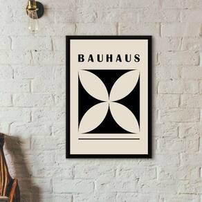 Quadro bauhaus flor preto e bege 33x24cm - com vidro