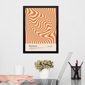 Quadro bauhaus laranja graphic poster - hypnotic silk 33x24cm - com vidro Cor: moldura branca Informações do produto tire todas as suas dúvidas no descritivo abaixo: decoração para quarto, sala, cozinha, escritório, área gourmet e muito mais. Chega de paredes vazias medidas - cada peça tem 33x24cm a4 . Material do papel - papel fotográfico brilhante de altíssima resolução acabamento - todos os quadros são acompanhados de vidro para proteção da imagem. - moldura em madeira maciça na cor preta ou branca conforme produto escolhido e pendurador . - os quadros são embalados de forma segura com plástico bolha com camada dupla de acordo com o tamanho dos quadros. - de 3 meses. Meu quadro chegou. Como posso fixá-lo Você precisa apenas de um martelo e um prego, pois os quadros já vão acompanhados de penduradores. Esta é a forma mais indicada. Como posso limpar meu quadro A limpeza é feita como um móvel comum da sua casa. Apenas um pano seco ou espanador são suficientes para tal