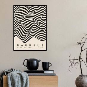Quadro bauhaus ondas bege com preto 24x18cm Moldura: madeira preta Informações do produto tire todas as suas dúvidas no descritivo abaixo: decoração para quarto, sala, cozinha, escritório, área gourmet e muito mais. Chega de paredes vazias medidas - cada peça tem 24x18cm a5 . Material do papel - papel fotográfico brilhante de altíssima resolução acabamento - todos os quadros são acompanhados de uma película de acetato para proteção da imagem. - os quadros são embalados de forma segura com plástico bolha com camada dupla de acordo com o tamanho dos quadros. Garantia - garantia de 3 meses. Meu quadro chegou. Como posso fixá-lo Você precisa apenas de um martelo e um prego, pois os quadros já vão acompanhados de penduradores. Esta é a forma mais indicada. Caso prefira, você pode utilizar uma fita dupla face neste caso, sugerimos de alta qualidade para evitar que descole e seu quadro caia . Como posso limpar meu quadro A limpeza é feita como um móvel comum da sua casa. Apenas um pano seco ou espanador são suficientes para tal