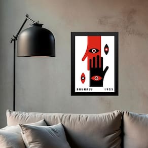 Quadro bauhaus preto e vermelho - mãos e olhos 33x24cm - com vidro Cor: moldura preta Informações do produto tire todas as suas dúvidas no descritivo abaixo: decoração para quarto, sala, cozinha, escritório, área gourmet e muito mais. Chega de paredes vazias medidas - cada peça tem 33x24cm a4 . Material do papel - papel fotográfico brilhante de altíssima resolução acabamento - todos os quadros são acompanhados de vidro para proteção da imagem. - moldura em madeira maciça na cor preta ou branca conforme produto escolhido e pendurador . - os quadros são embalados de forma segura com plástico bolha com camada dupla de acordo com o tamanho dos quadros. - de 3 meses. Meu quadro chegou. Como posso fixá-lo Você precisa apenas de um martelo e um prego, pois os quadros já vão acompanhados de penduradores. Esta é a forma mais indicada. Como posso limpar meu quadro A limpeza é feita como um móvel comum da sua casa. Apenas um pano seco ou espanador são suficientes para tal