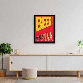 Quadro beer - evolução da humanidade 24x18cm - com vidro Moldura: madeira preta Informações do produto tire todas as suas dúvidas no descritivo abaixo: decoração para quarto, sala, cozinha, escritório, área gourmet e muito mais. Chega de paredes vazias medidas - cada peça tem 24x18cm a5 . Material do papel - papel fotográfico brilhante de altíssima resolução acabamento - todos os quadros são acompanhados de vidro para proteção da imagem. - moldura em madeira maciça na cor preta e pendurador . - os quadros são embalados de forma segura com plástico bolha com camada dupla de acordo com o tamanho dos quadros. - de 3 meses. Meu quadro chegou. Como posso fixá-lo Você precisa apenas de um martelo e um prego, pois os quadros já vão acompanhados de penduradores. Esta é a forma mais indicada. Como posso limpar meu quadro A limpeza é feita como um móvel comum da sua casa. Apenas um pano seco ou espanador são suficientes para tal