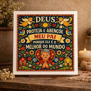 Quadro Benção Para Meu Pai Amado 33x33cm Mold Branca Vidro
