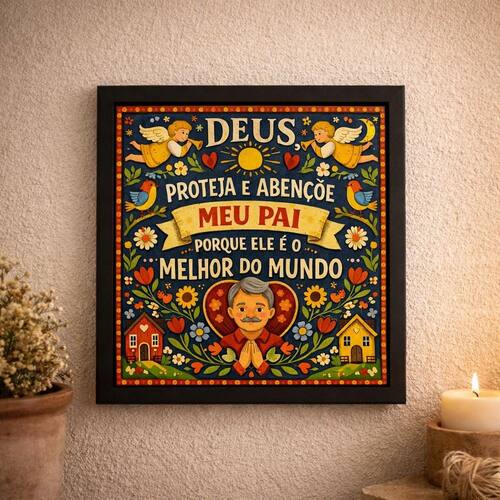 Quadro Benção Para Meu Pai Amado 33x33cm Mold Preta Vidro