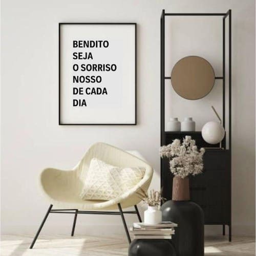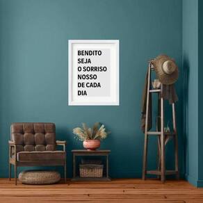 Quadro bendito seja o sorriso - 60x48cm Moldura: madeira branca Informações do produto tire todas as suas dúvidas no descritivo abaixo: decoração para quarto, sala, cozinha, escritório, área gourmet e muito mais. Chega de paredes vazias medidas - cada peça tem 60x48cm . Material do papel - papel fotográfico brilhante de altíssima resolução acabamento - todos os quadros são acompanhados de vidro para proteção da imagem. - moldura em madeira maciça na cor preta ou branca conforme produto escolhido e pendurador. - paspatur branco com 7cm de largura - os quadros são embalados de forma segura com plástico bolha com camada dupla de acordo com o tamanho dos quadros. Garantia - garantia de 3 meses. Meu quadro chegou. Como posso fixá-lo Você precisa apenas de um martelo e um prego, pois os quadros já vão acompanhados de penduradores. Esta é a forma mais indicada. Como posso limpar meu quadro A limpeza é feita como um móvel comum da sua casa. Apenas um pano seco ou espanador são suficientes para tal