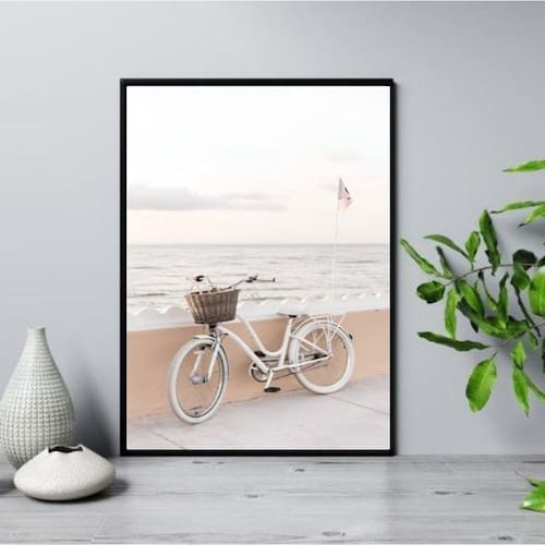 Quadro bicicleta na praia 33x24cm Moldura: madeira branca Informações do produto tire todas as suas dúvidas no descritivo abaixo: decoração para quarto, sala, cozinha, escritório, área gourmet e muito mais. Chega de paredes vazias medidas - cada peça tem 33x24cm a4 . Material do papel - papel fotográfico brilhante de altíssima resolução acabamento - todos os quadros são acompanhados de uma película de acetato para proteção da imagem. - os quadros são embalados de forma segura com plástico bolha com camada dupla de acordo com o tamanho dos quadros. Garantia - garantia de 3 meses. Meu quadro chegou. Como posso fixá-lo Você precisa apenas de um martelo e um prego, pois os quadros já vão acompanhados de penduradores. Esta é a forma mais indicada. Caso prefira, você pode utilizar uma fita dupla face neste caso, sugerimos de alta qualidade para evitar que descole e seu quadro caia . Como posso limpar meu quadro A limpeza é feita como um móvel comum da sua casa. Apenas um pano seco ou espanador são suficientes para tal