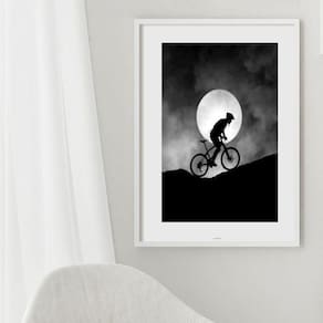 Quadro bike ciclista lua cheia - 60x48cm Moldura: madeira preta Informações do produto tire todas as suas dúvidas no descritivo abaixo: decoração para quarto, sala, cozinha, escritório, área gourmet e muito mais. Chega de paredes vazias medidas - cada peça tem 60x48cm . Material do papel - papel fotográfico brilhante de altíssima resolução acabamento - todos os quadros são acompanhados de vidro para proteção da imagem. - moldura em madeira maciça na cor preta ou branca conforme produto escolhido e pendurador. - paspatur branco com 7cm de largura - os quadros são embalados de forma segura com plástico bolha com camada dupla de acordo com o tamanho dos quadros. Garantia - garantia de 3 meses. Meu quadro chegou. Como posso fixá-lo Você precisa apenas de um martelo e um prego, pois os quadros já vão acompanhados de penduradores. Esta é a forma mais indicada. Como posso limpar meu quadro A limpeza é feita como um móvel comum da sua casa. Apenas um pano seco ou espanador são suficientes para tal