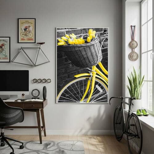 Quadro Bike Com Flores Amarelas-70x50cm Mold Branca