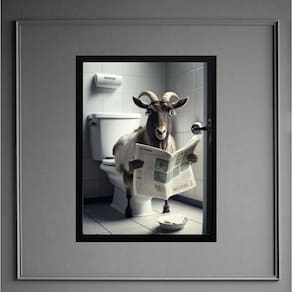 Quadro bode no banheiro lendo jornal 45x34cm - com vidro Moldura: madeira branca Informações do produto tire todas as suas dúvidas no descritivo abaixo: decoração para quarto, sala, cozinha, escritório, área gourmet e muito mais. Chega de paredes vazias medidas - cada peça tem 45x34cm a3 . Material do papel - papel fotográfico brilhante de altíssima resolução acabamento - todos os quadros são acompanhados de vidro para proteção da imagem. - moldura em madeira maciça na cor preta ou branca conforme produto escolhido e pendurador . - os quadros são embalados de forma segura com plástico bolha com camada dupla de acordo com o tamanho dos quadros. Garantia - garantia de 3 meses. Meu quadro chegou. Como posso fixá-lo Você precisa apenas de um martelo e um prego, pois os quadros já vão acompanhados de penduradores. Esta é a forma mais indicada. Como posso limpar meu quadro A limpeza é feita como um móvel comum da sua casa. Apenas um pano seco ou espanador são suficientes para tal Ean: 7896170144230