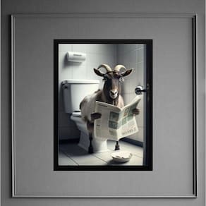 Quadro Bode No Banheiro Lendo Jornal 45X34Cm