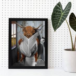 Quadro boi no banheiro lendo jornal 33x24cm - com vidro Moldura: madeira preta Informações do produto tire todas as suas dúvidas no descritivo abaixo: decoração para quarto, sala, cozinha, escritório, área gourmet e muito mais. Chega de paredes vazias medidas - cada peça tem 33x24cm a4 . Material do papel - papel fotográfico brilhante de altíssima resolução acabamento - todos os quadros são acompanhados de vidro para proteção da imagem. - moldura em madeira maciça na cor preta ou branca conforme produto escolhido e pendurador . - os quadros são embalados de forma segura com plástico bolha com camada dupla de acordo com o tamanho dos quadros. Garantia - garantia de 3 meses. Meu quadro chegou. Como posso fixá-lo Você precisa apenas de um martelo e um prego, pois os quadros já vão acompanhados de penduradores. Esta é a forma mais indicada. Como posso limpar meu quadro A limpeza é feita como um móvel comum da sua casa. Apenas um pano seco ou espanador são suficientes para tal Ean: 7891428387889