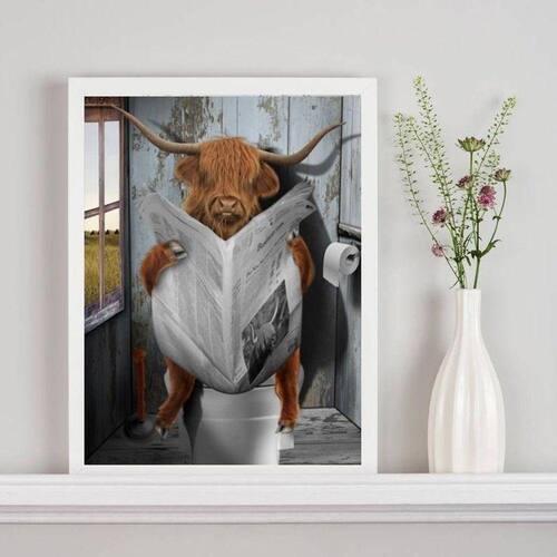 Quadro boi no banheiro lendo jornal 33x24cm - com vidro Moldura: madeira preta Informações do produto tire todas as suas dúvidas no descritivo abaixo: decoração para quarto, sala, cozinha, escritório, área gourmet e muito mais. Chega de paredes vazias medidas - cada peça tem 33x24cm a4 . Material do papel - papel fotográfico brilhante de altíssima resolução acabamento - todos os quadros são acompanhados de vidro para proteção da imagem. - moldura em madeira maciça na cor preta ou branca conforme produto escolhido e pendurador . - os quadros são embalados de forma segura com plástico bolha com camada dupla de acordo com o tamanho dos quadros. Garantia - garantia de 3 meses. Meu quadro chegou. Como posso fixá-lo Você precisa apenas de um martelo e um prego, pois os quadros já vão acompanhados de penduradores. Esta é a forma mais indicada. Como posso limpar meu quadro A limpeza é feita como um móvel comum da sua casa. Apenas um pano seco ou espanador são suficientes para tal