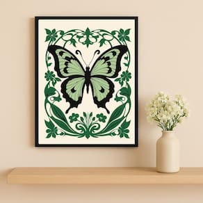 Quadro Borboleta ArtNouveau Verde 24x18cm Mold Branca