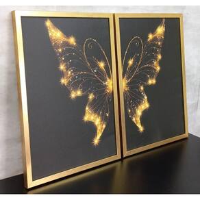 Apresentamos o nosso deslumbrante Quadro Borboleta Brilhante Canvas Moldura Dourada 60X40Cm, uma verdadeira obra de arte que irá adicionar um toque de elegância e sofisticação à sua decoração. Este conjunto possui dois quadros com dimensões generosas de 60x40cm cada, proporcionando uma presença marcante em qualquer espaço em que seja colocado.