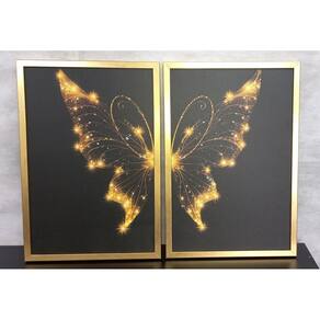 Apresentamos o nosso deslumbrante Quadro Borboleta Brilhante Canvas Moldura Dourada 60X40Cm, uma verdadeira obra de arte que irá adicionar um toque de elegância e sofisticação à sua decoração. Este conjunto possui dois quadros com dimensões generosas de 60x40cm cada, proporcionando uma presença marcante em qualquer espaço em que seja colocado.
