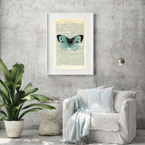 Quadro Borboleta Vintage Azul - 60x48cm - Moldura: Madeira preta
