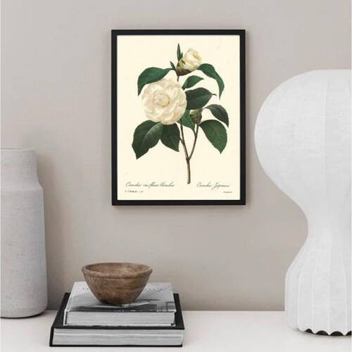 Quadro botânica flor camélia 33x24cm - com vidro