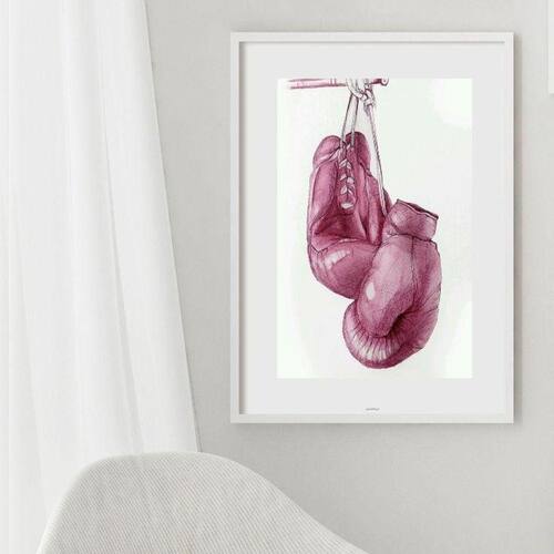 Quadro Boxe Luvas Rosa - 60X48Cm