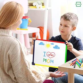 O design leve do nosso pequeno quadro branco para estudantes permite que crianças e crianças os carreguem e manuseiem com facilidade. O pequeno quadro apagável a seco é excelente para um aprendizado interativo eficaz em grupos de recreação, escola ou até mesmo para uso na cama. Use o mini quadro branco como um quadro magnético para o quadro de escrever do quadro branco da geladeira. Coloque o quadro branco portátil na geladeira, usando-o como quadro de notas, mini quadro apagável a seco para geladeira ou cavalete de arte para crianças. Nossa placa magnética apagável a seco para geladeira é feita com material de alta qualidade e é resistente o suficiente para durar ano após ano. A superfície lisa e elegante do quadro de marcadores facilita a escrita e o apagamento posterior. Basta escrever com suas marcas apagáveis a seco no quadro branco, limpar e reutilizar o quadro branco dos laptops apagáveis a seco da mesa, permanentemente! Este quadro branco magnético será uma ótima ferramenta educacional para crianças e estudantes e é uma maneira divertida e fácil de as crianças praticarem suas habilidades de escrita usando o quadro magnético para crianças. Adicione o quadro magnético apagável a seco para crianças ao seu material educacional e material de artesanato. A pequena placa magnética apagável a seco é adequada para casa, jardim de infância, escola e até mesmo para o escritório. Use o quadro branco de mesa com suas letras magnéticas nos quadros brancos para salas de aula, quadros brancos para estudantes ou, como lista de tarefas, quadro branco e quadro branco portátil, quadros brancos pessoais para estudantes. Este quadro branco magnético vem com uma moldura de cores vivas, e a grande superfície de escrita em branco do quadro apagável a seco oferece aos alunos muito espaço para escrever, então você pode usar o pequeno quadro branco apagável a seco para materiais didáticos, como desenho, ortografia, caligrafia, matemática e muito mais. O quadro apagável a seco de mesa para crianças é um dos itens essenciais do apartamento e é o quadro branco infantil essencial para viagens rodoviárias e atividades essenciais para viagens de carro infantil. Faça dos pequenos quadros brancos os acessórios de viagem infantis para atividades automotivas para crianças de 3 anos ou mais.