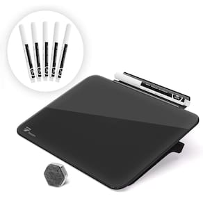 TOWON Vidro para quadro branco de mesa, quadro branco apagado a seco, material de mesa de escritório, artefato de estenografia para escritório, casa, escola, 20 x 15 cm, preto - Escrita suave e fácil de limpar: um mini bloco de anotações de mesa vem com um artesanato exclusivo de vidro preto que é suave e durável, e resiste TOWON fantasmas e manchas - Tamanho perfeito para uma área de trabalho: a aparência geral do vidro temperado complementa qualquer decoração moderna. A prancha tem um bom peso e, portanto, é muito estável - Traga uma experiência multifuncional diferente: perfeito para pequenas anotações, planos, horários, rabiscos diários e mensagens motivacionais. Melhor experiência de escrita - Mais detalhes: projetamos tapetes antiderrapantes adicionais na superfície de contato inferior e dentro do clipe para aumentar o atrito e experimentar melhorias - Ideal para oferecer: o quadro, mede 20 x 15 cm e vem com 5 marcadores e um suporte de marcador adesivo, é um presente perfeito para colegas e amigos em um feriado como o Natal