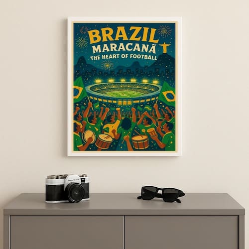 Quadro Brasil Estádio Maracanã 24x18cm Mold Branca