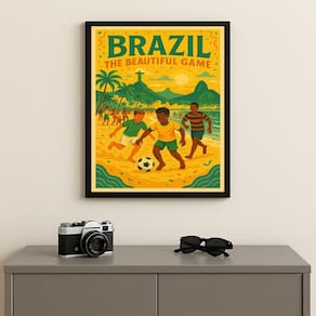 Quadro Brasil Futebol na Praia RJ 33x24cm Mold Preta Vidro