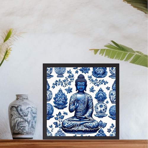 Quadro buda azul estilo azulejo português - 33x33cm Cor: moldura preta Informações do produto tire todas as suas dúvidas no descritivo abaixo: decoração para quarto, sala, cozinha, escritório, área gourmet e muito mais. Chega de paredes vazias medidas - cada peça tem 33x33cm. Material do papel - papel fotográfico brilhante de altíssima resolução acabamento - todos os quadros são acompanhados de uma película de acetato para proteção da imagem. - os quadros são embalados de forma segura com plástico bolha com camada dupla de acordo com o tamanho dos quadros. - de 3 meses. Meu quadro chegou. Como posso fixá-lo Você precisa apenas de um martelo e um prego, pois os quadros já vão acompanhados de penduradores. Esta é a forma mais indicada. Caso prefira, você pode utilizar uma fita dupla face neste caso, sugerimos de alta qualidade para evitar que descole e seu quadro caia . Como posso limpar meu quadro A limpeza é feita como um móvel comum da sua casa. Apenas um pano seco ou espanador são suficientes para tal Marca: Não Informado