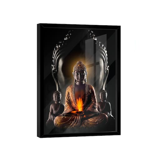 Quadro Buda Fire -- BR ARTES Moldura Preta e Vidro - Ultra Grande 150x100 -