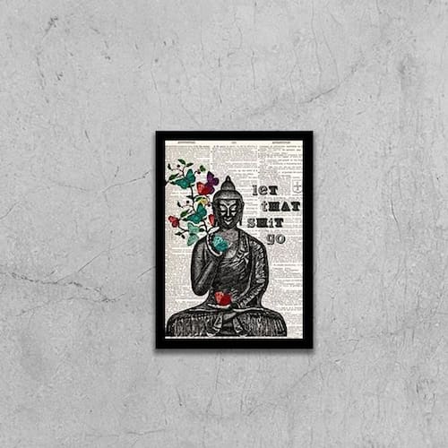 Quadro buda let that shit go 24x18cm Moldura: madeira preta Informações do produto tire todas as suas dúvidas no descritivo abaixo: decoração para quarto, sala, cozinha, escritório, área gourmet e muito mais. Chega de paredes vazias medidas - cada peça tem 24x18cm a5 . Material do papel - papel fotográfico brilhante de altíssima resolução acabamento - todos os quadros são acompanhados de uma película de acetato para proteção da imagem. - moldura em madeira maciça na cor branca e pendurador móvel que pode ser retirado facilmente caso deseje fixar com fita dupla face. - os quadros são embalados de forma segura com plástico bolha com camada dupla de acordo com o tamanho dos quadros. - de 3 meses prazo de envio pedimos 24 horas úteis no máximo para enviar seu pedido após o envio, segue os prazos normais dos correios, cerca de 7 exceto para norte e nordeste, que pode ser de até 14 . Em diversas cidades, este prazo normalmente é reduzido, mas depende do prazo dos correios. Meu quadro chegou. Como posso fixá-lo Você precisa apenas de um martelo e um prego, pois os quadros já vão acompanhados de penduradores. Esta é a forma mais indicada. Caso prefira, você pode utilizar uma fita dupla face neste caso, sugerimos de alta qualidade para evitar que descole e seu quadro caia . Como posso limpar meu quadro A limpeza é feita como um móvel comum da sua casa. Apenas um pano seco ou espanador são suficientes para tal Marca: Não Informado Ean: 7892090485545