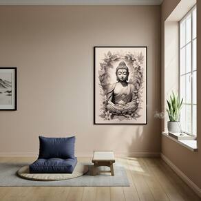 Quadro Buda Símbolo de Serenidade e Paz Interior - 70x50cm - Cor: Moldura Branca