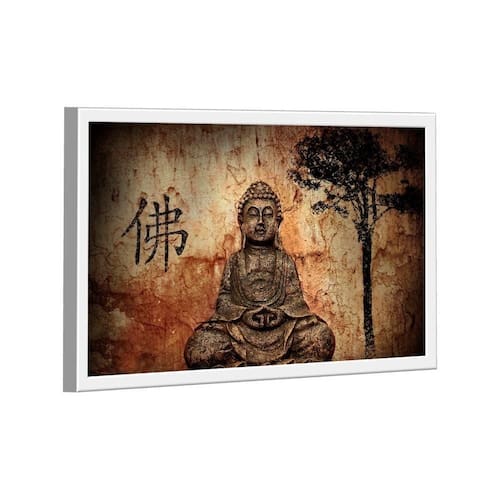 Quadro Buddha Statue Wall -- BR ARTES Moldura Branca - Grande 118x78 -