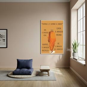 Quadro Budista com Frase Motivacional - 70x50cm - Cor: Moldura Branca
