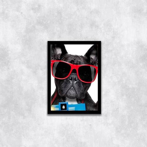 Quadro Bulldog Francês Férias 45x34cm - com vidro - Moldura: Madeira branca