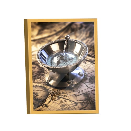 Quadro Bússola Decorativa -- BR ARTES Moldura Dourada e Vidro - Pequeno 60x40 -