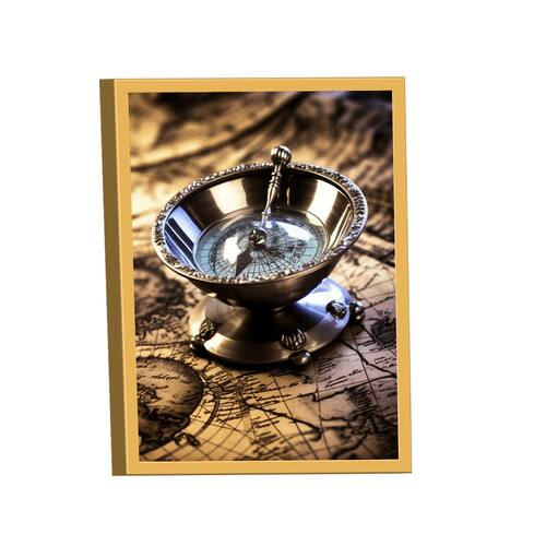 Quadro Bússola Decorativa -- BR ARTES Moldura Dourada - Grande 118x78 -
