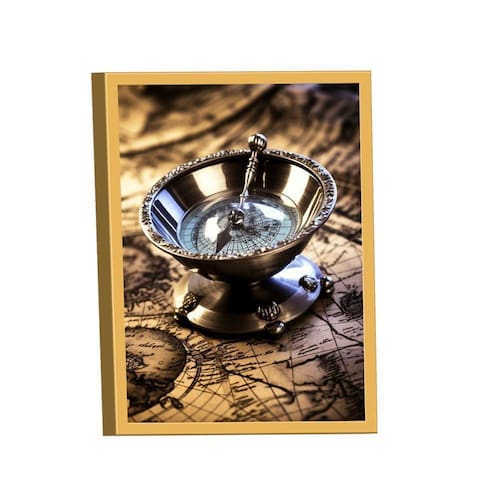 Quadro Bússola Decorativa -- BR ARTES Moldura Dourada - Médio 84x54 -