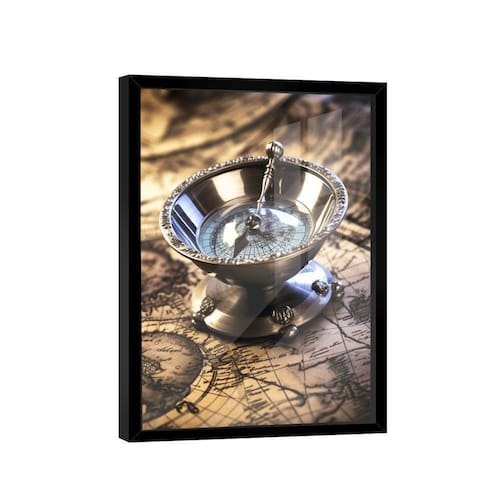 Quadro Bússola Decorativa -- BR ARTES Moldura Preta e Vidro - Pequeno 60x40 -