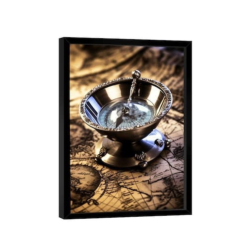 Quadro Bússola Decorativa -- BR ARTES Moldura Preta - Pequeno 60x40 -