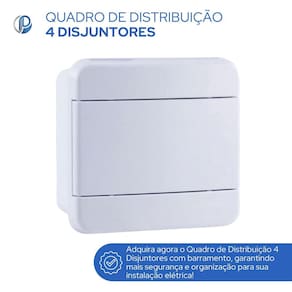Capacidade para 4 disjuntores, permitindo o controle e proteção de até 4 circuitos simultaneamente.