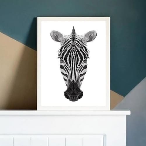 Quadro cabeça de zebra geométrica 45x34cm