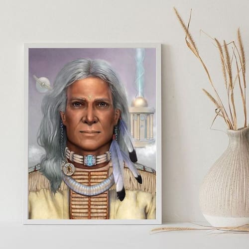Quadro Caboclo Pena Branca 33x24cm - Madeira Branca
