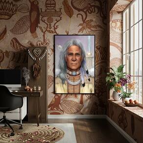 Quadro Caboclo Pena Branca - 70x50cm - Cor: Moldura Branca