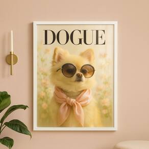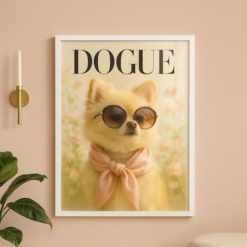 Quadro Cachorrinha Lulu Da Pomerânea Fashion 24x18cm - Cor: Moldura branca
