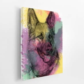 Quadro Cachorro Pastor Alemão Tinta Aquarela Canvas 20X30Cm
