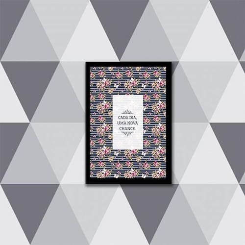 Quadro cada dia uma nova chance 33x24cm - com vidro Moldura: madeira preta Informações do produto tire todas as suas dúvidas no descritivo abaixo: decoração para quarto, sala, cozinha, escritório, área gourmet e muito mais. Chega de paredes vazias medidas - cada peça tem 33x24cm a4 . Material do papel - papel fotográfico brilhante de altíssima resolução acabamento - todos os quadros são acompanhados de vidro para proteção da imagem. - moldura em madeira maciça na cor preta e pendurador . - os quadros são embalados de forma segura com plástico bolha com camada dupla de acordo com o tamanho dos quadros. - de 3 meses. Meu quadro chegou. Como posso fixá-lo Você precisa apenas de um martelo e um prego, pois os quadros já vão acompanhados de penduradores. Esta é a forma mais indicada. Como posso limpar meu quadro A limpeza é feita como um móvel comum da sua casa. Apenas um pano seco ou espanador são suficientes para tal