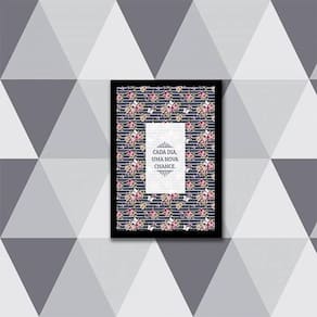 Quadro cada dia uma nova chance 45x34cm - com vidro Moldura: madeira preta Informações do produto tire todas as suas dúvidas no descritivo abaixo: decoração para quarto, sala, cozinha, escritório, área gourmet e muito mais. Chega de paredes vazias medidas - cada peça tem 45x34cm a3 . Material do papel - papel fotográfico brilhante de altíssima resolução acabamento - todos os quadros são acompanhados de vidro para proteção da imagem. - moldura em madeira maciça na cor preta e pendurador . - os quadros são embalados de forma segura com plástico bolha com camada dupla de acordo com o tamanho dos quadros. - de 3 meses. Meu quadro chegou. Como posso fixá-lo Você precisa apenas de um martelo e um prego, pois os quadros já vão acompanhados de penduradores. Esta é a forma mais indicada. Como posso limpar meu quadro A limpeza é feita como um móvel comum da sua casa. Apenas um pano seco ou espanador são suficientes para tal