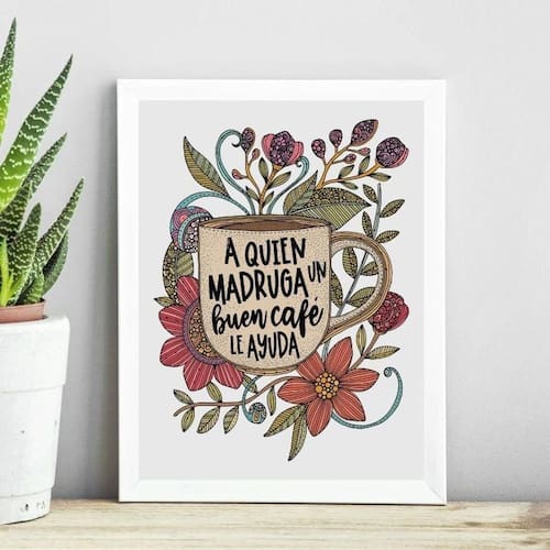 Quadro Café Com Flores - Buen Café 45X34Cm - Com Vidro