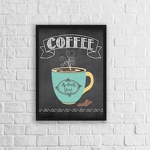 Quadro café estilo quadro negro 45x34cm - com vidro Moldura: madeira preta Informações do produto tire todas as suas dúvidas no descritivo abaixo: decoração para quarto, sala, cozinha, escritório, área gourmet e muito mais. Chega de paredes vazias medidas - cada peça tem 45x34cm a3 . Material do papel - papel fotográfico brilhante de altíssima resolução acabamento - todos os quadros são acompanhados de vidro para proteção da imagem. - moldura em madeira maciça na cor preta e pendurador . - os quadros são embalados de forma segura com plástico bolha com camada dupla de acordo com o tamanho dos quadros. - de 3 meses. Meu quadro chegou. Como posso fixá-lo Você precisa apenas de um martelo e um prego, pois os quadros já vão acompanhados de penduradores. Esta é a forma mais indicada. Como posso limpar meu quadro A limpeza é feita como um móvel comum da sua casa. Apenas um pano seco ou espanador são suficientes para tal
